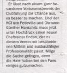 na wenigstens kommen dem Alex ein paar kritische worte gegenüber den haien aus, was man von Flo, dem `sport chef´ bei seinem artikel vom do. nicht behaupten kann. man vergleiche nur die unterschiedlichen bewertungen der letzten saison wie `sportlich überschaubar´ bei Madl und `horror premieren saison´ bei Alex auch mit seiner (treffenden) bewertung des managements mit `ausbaufähiger professionalität´...