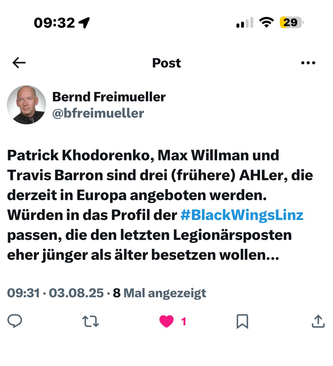 ein jüngerer C2 neben Lebler, der Linz bzw. die ICE als Sprungbrett für höheres in Europa sieht, wäre auch noch eine Lösung die leistbar wäre auch wenn man solche Spieler dann kaum halten wird, aber der Fokus sollte ja eher auf Lebler liegen solange es noch geht