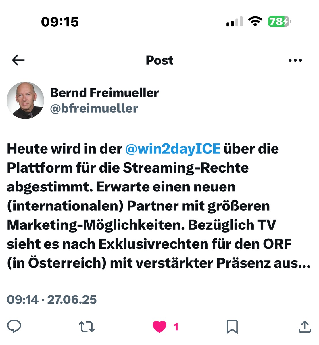 Der ORF wird weiterhin das Thema so betreiben wir bisher, nur eben mehr Spiele. Da kann man sich schon freuen wenn Frauenfussball mehr Qualität bekommt und auf ORF1 läuft und Eishockey auf Sport+ mit Kommentatoren in Wien in einem Kammerl.