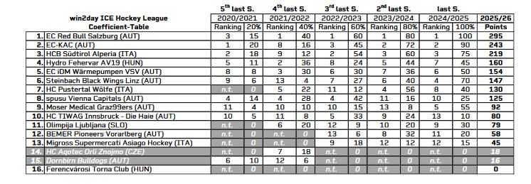 Um Platz 10 werden sich die beiden Mannschaften aus Ungarn matchen, Linz, Caps und der VSV sehe ich bei den Plätzen 7 bis 9.