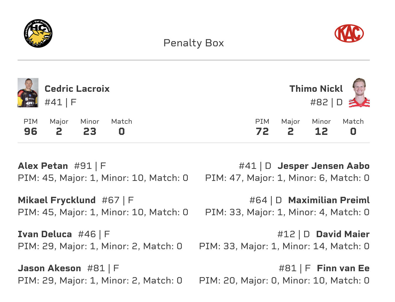 Heute treffen die beiden "Bad Boys" der Liga Cedric Lacroix und Thimo Nickl aufeinander. Passieren wird noch weniger als im Derby. Auf eine gute & friedliche Stimmung wie immer in Pustertal.