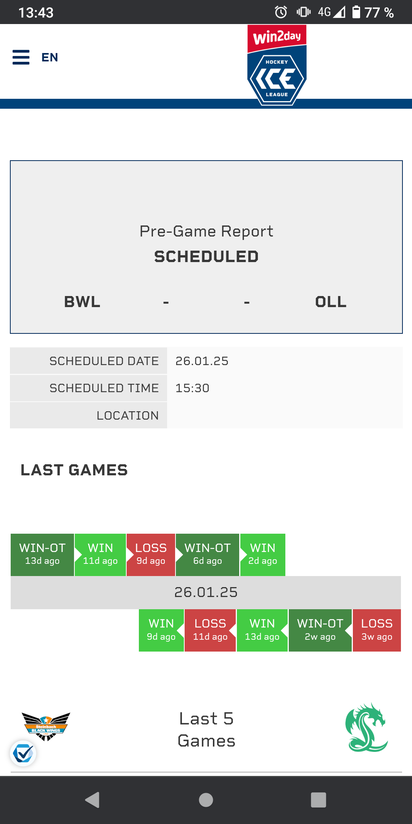 45.Rd. Black Wings Linz - Hokejski Klub SŽ Olimpija Ljubljana, So. 2025-01-26 15:30
