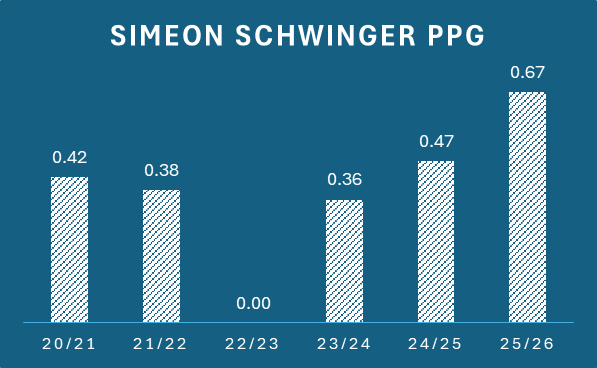 Keine Ahnung, Schwinger ist halt ein Roleplayer, der heuer eine Ausreiser Saison nach oben hat, mir ist der bis heuer genau Null aufgefallen.
