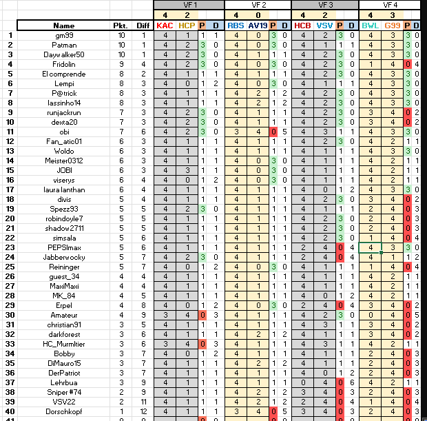 Fridolin holt sich mit 4 Punkten aus seinen HF Tipps die Führung. Wird ein spannendes (Tipp) Finale. ![]()