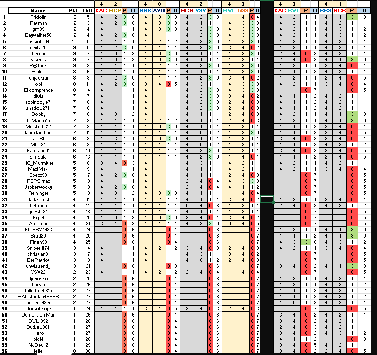 Fridolin holt sich mit 4 Punkten aus seinen HF Tipps die Führung. Wird ein spannendes (Tipp) Finale. ![]()