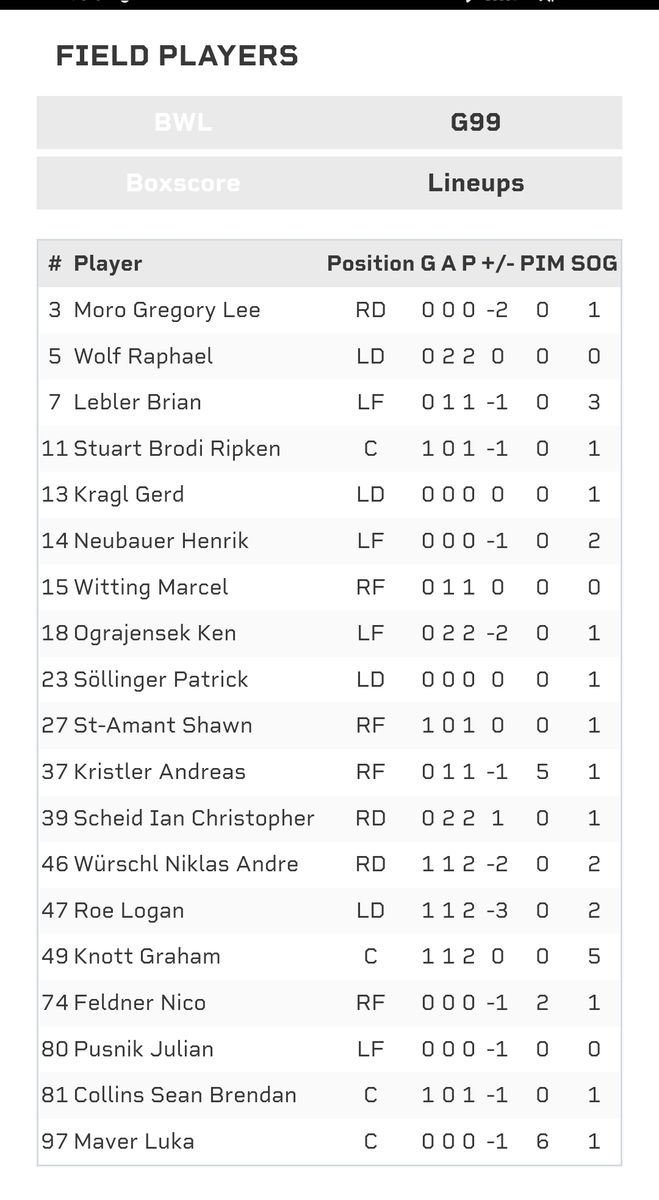 Alle schimpfen über Scheid! Aber die #39 hat laut Ligaseite als einziger Linzer mit +1 abgeschlossen. Er war ledigich beim Gegenteffer von Schiechl auf dem Eis. Der Rest darunter :prost: