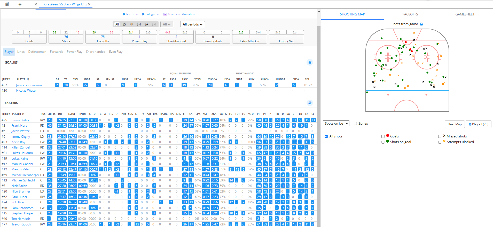 Ich bin kein Statistikfreak, aber was da auffällt, Harper 90 Prozent Face offs gewonnen. 9 von 10.