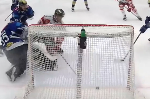 Da geht der Puck grad über die Linie, Cannata fällt schon um...