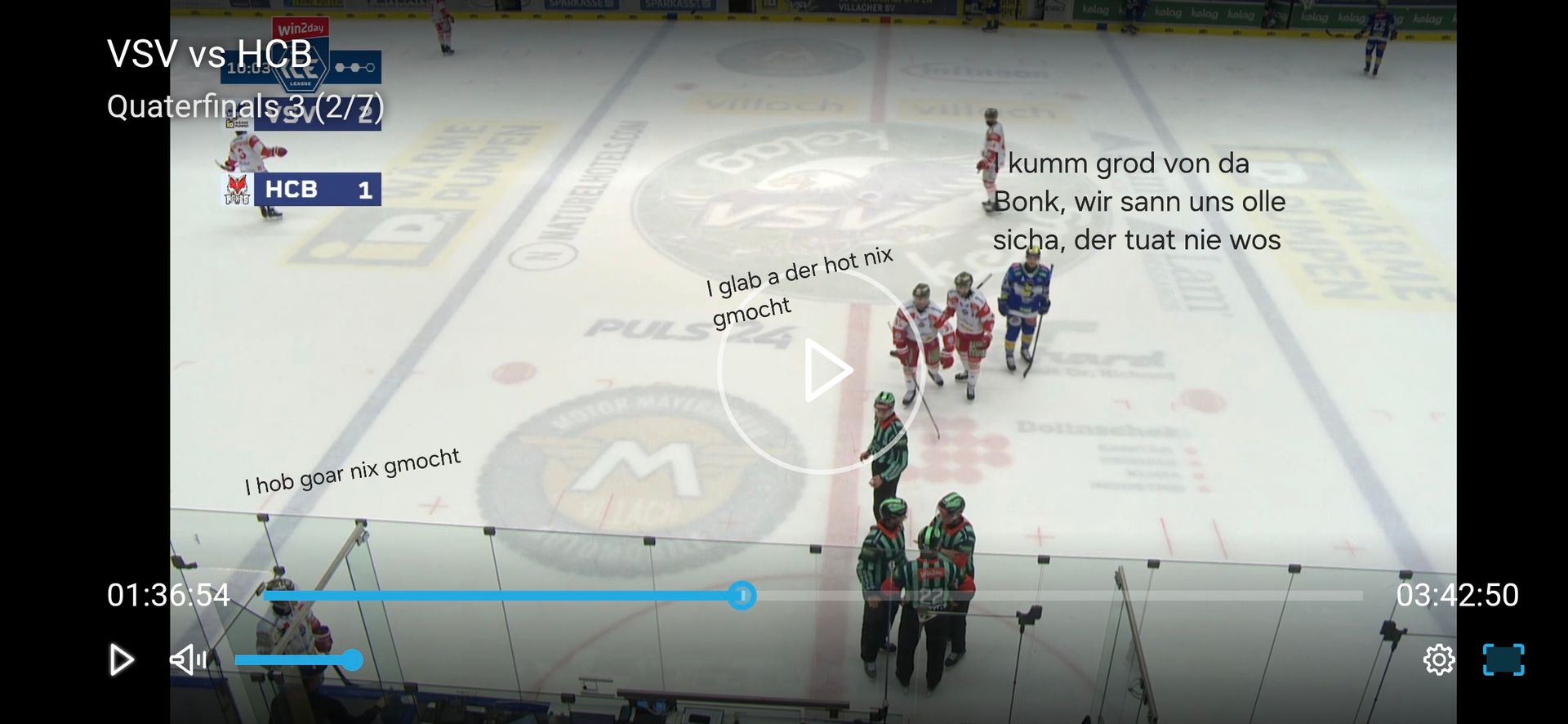 Is doch g'scheid von den Bozner, Villach so den Nerv zu ziehen, dass sich Spieler sogar im Interview darüber aufregen, um so Strafen zu produzieren. De san halt ne richtige Playoffmannschaft...