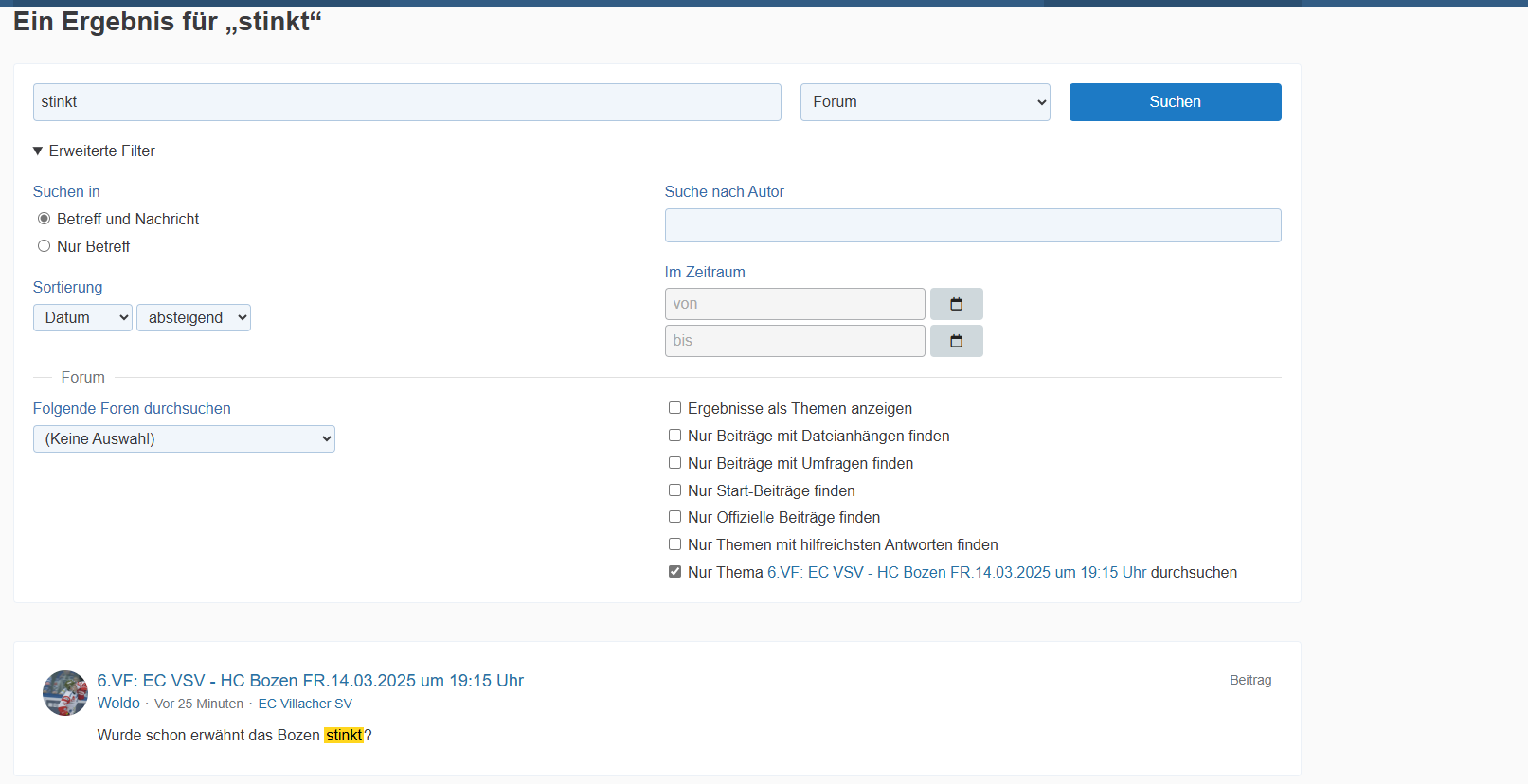 6.VF: EC VSV - HC Bozen FR.14.03.2025 um 19:15 Uhr