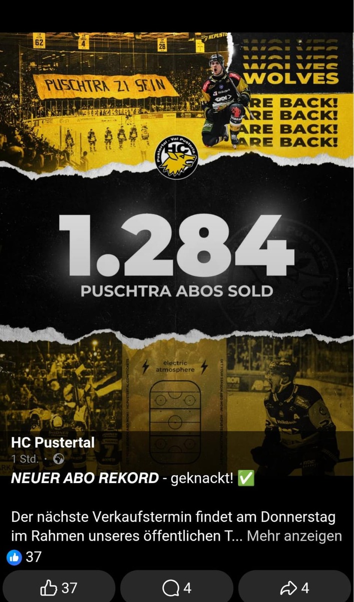 3... 2... 1... Los gehts! 🏒 HC Falkensteiner Pustertal Wölfe