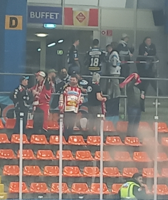 Das waren 6 KAC Fans! Und ja es war absolut freundlich und gute Gespräche! Hab auch einen netten Austausch gehabt! Haben von unserem Support geschwärmt!:)