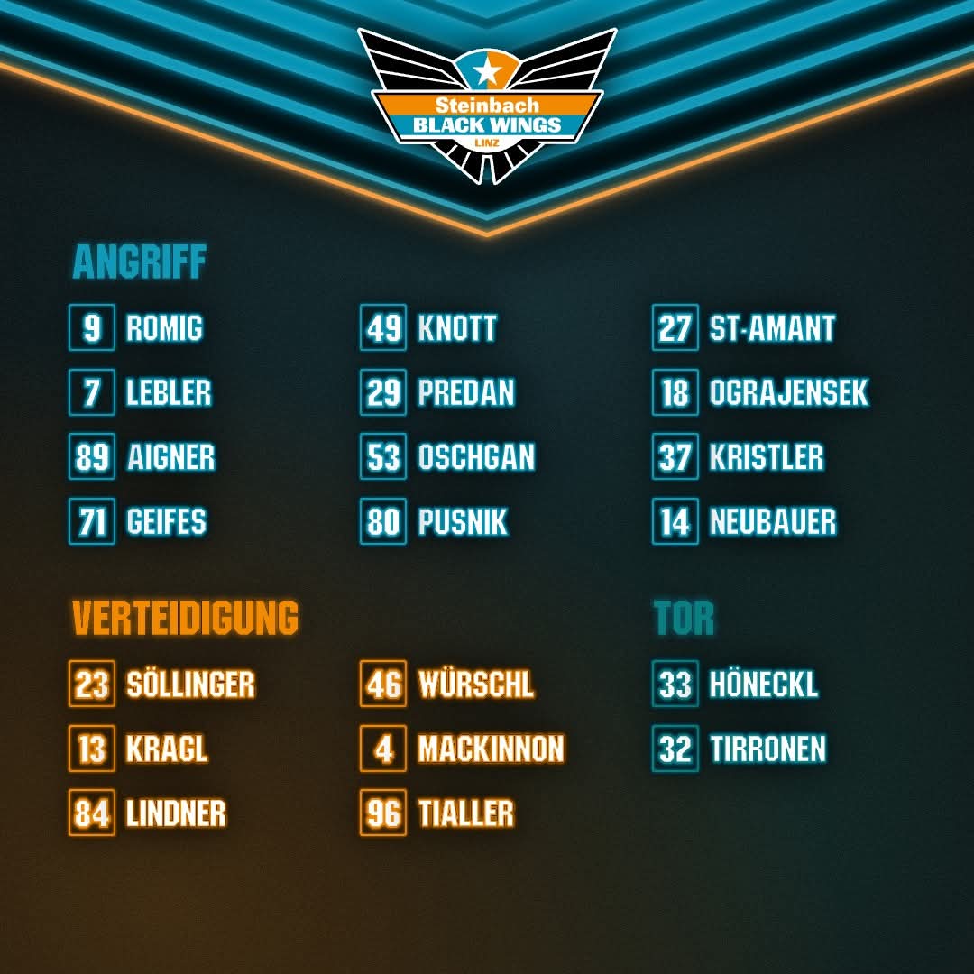Noch einmal gehen wir auf heimischem Eis alle Abläufe durch. Soeben öffnen die Tore für das finale Schaulaufen in der Linz AG Eisarena. Gegen Zvolen erhalten dieses Mal Logan Roe, Greg Moro und Sean Collins eine wohlverdiente Pause. Wir präsentieren das heutige Line Up für Testspiel Nummer 5. 👀