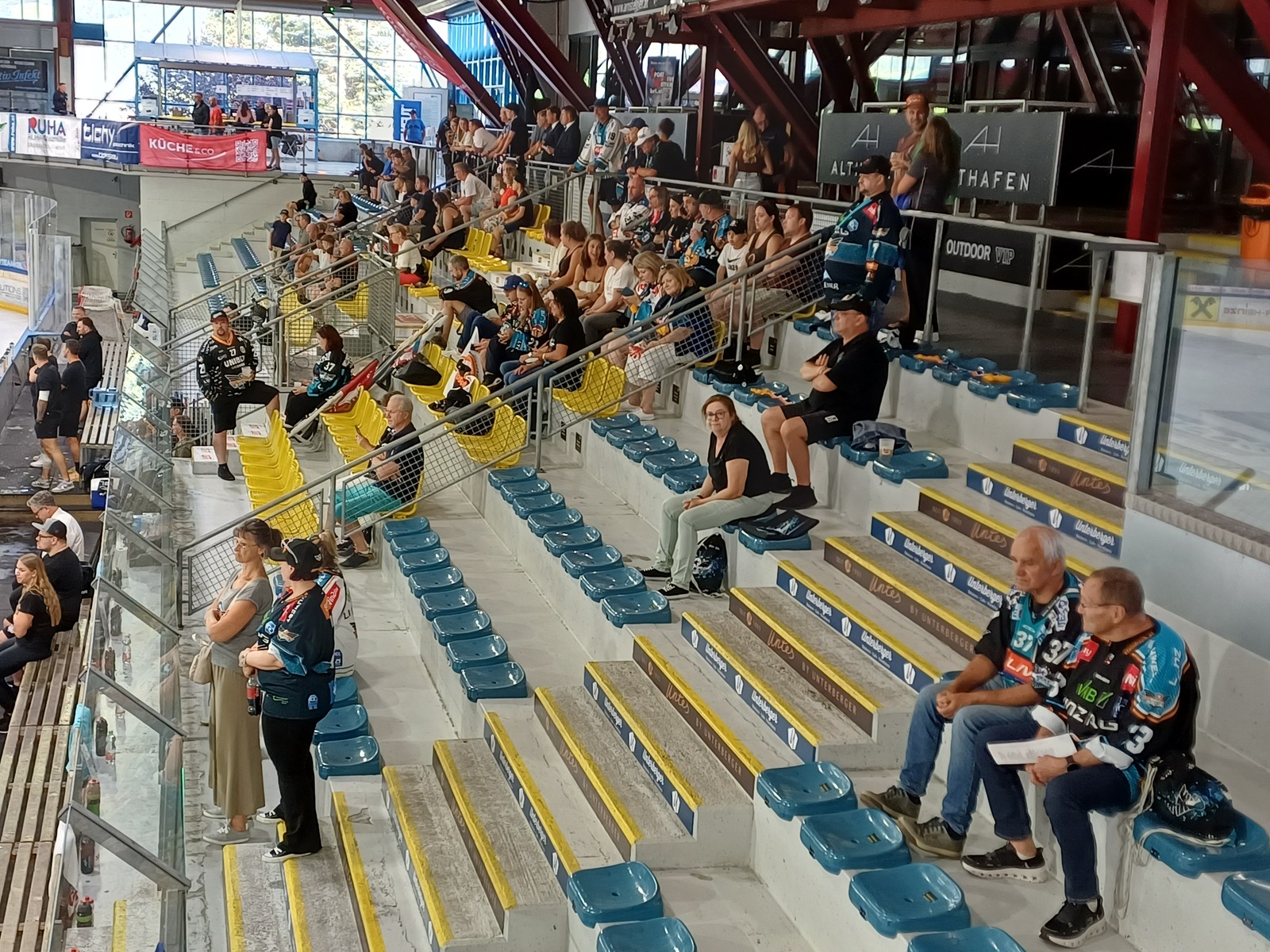 Bei gemütlichen 38 Grad Außentemperatur bekommen wir endlich die schönste Abkühlung der Welt zurück. Gleich steigt das allererste Face-Off in der neuen Saison. Brian Lebler und Andreas Kristler sind planmäßig nicht mit dabei. Gerd Kragl fungiert daher heute als Kapitän. So sieht sie aus, die erste Aufstellung von Head Coach Philipp Lukas für das Match in Zell am See gegen die Huskies.