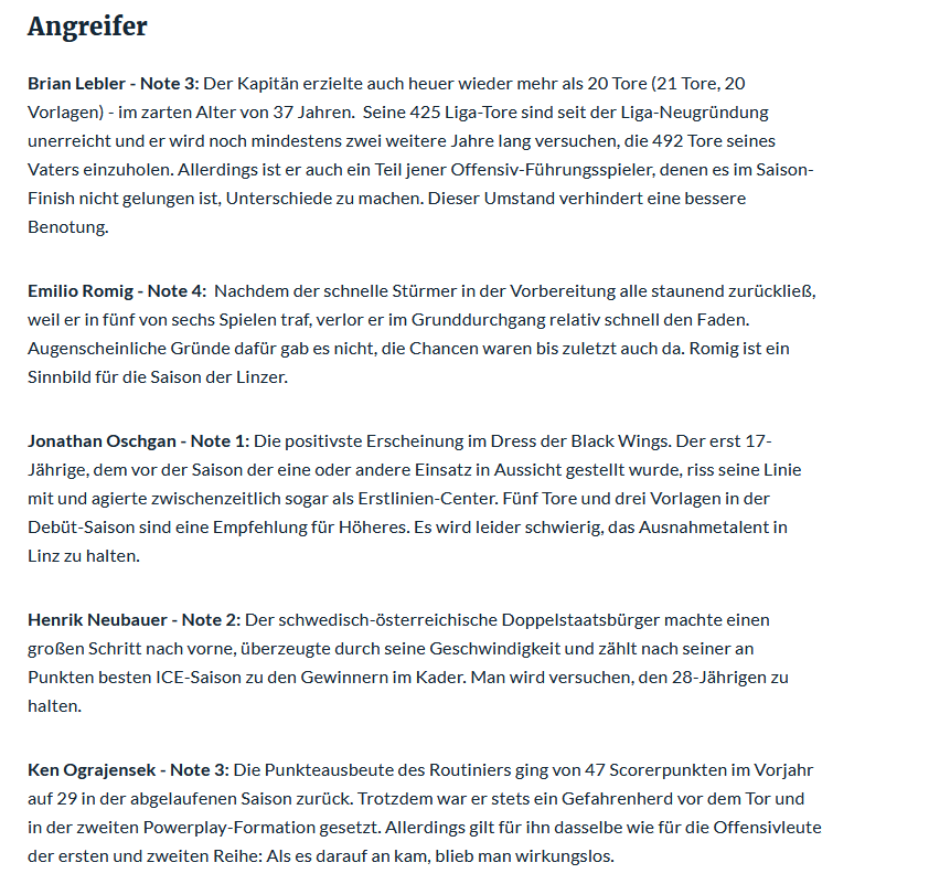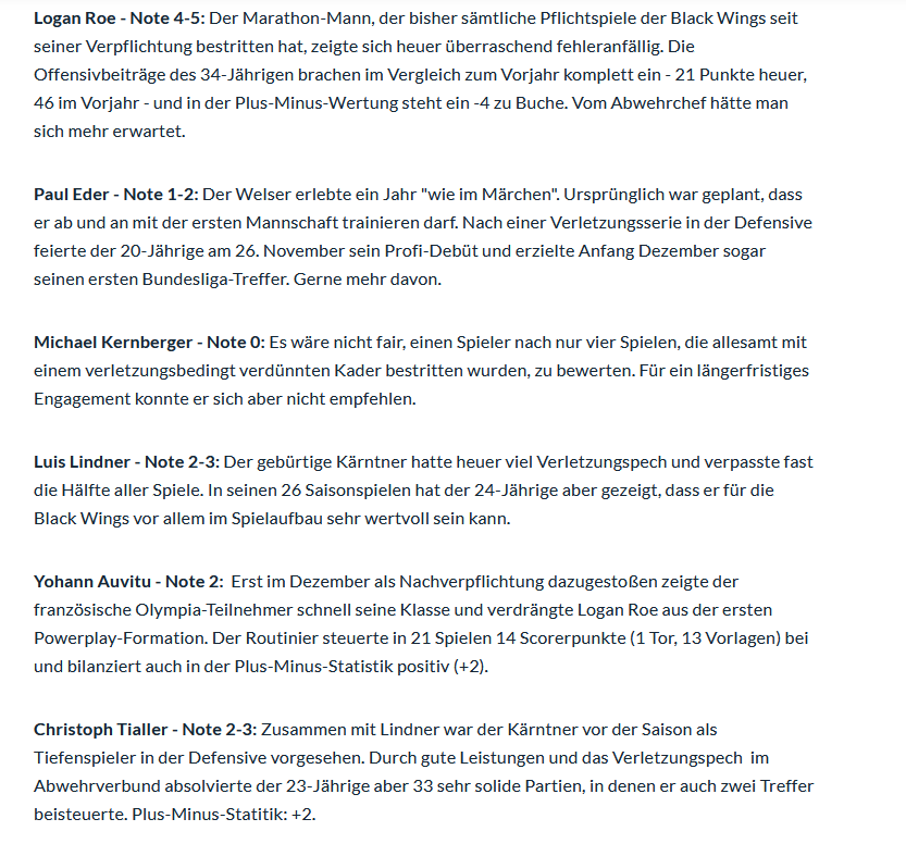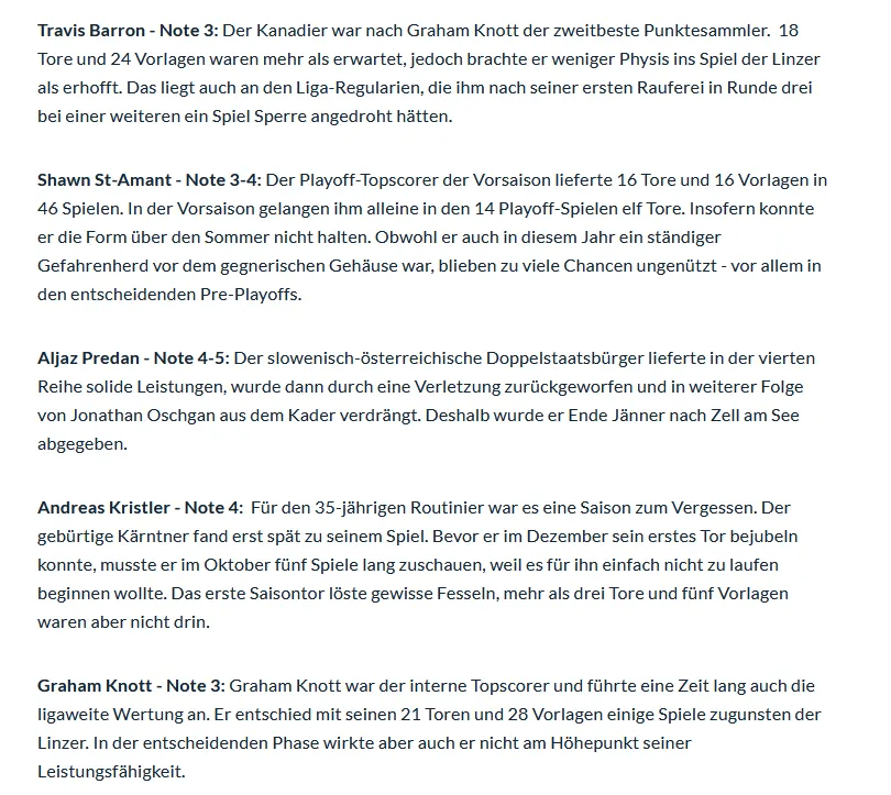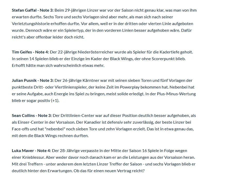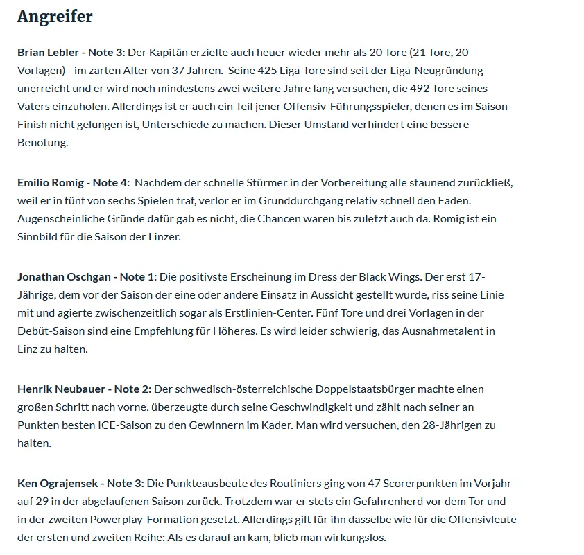 LINZ. Für die Steinbach Black Wings ist eine durchwachsene Saison zu Ende gegangen. Die OÖN beurteilen die Leistungen der Cracks auf dem Eis: