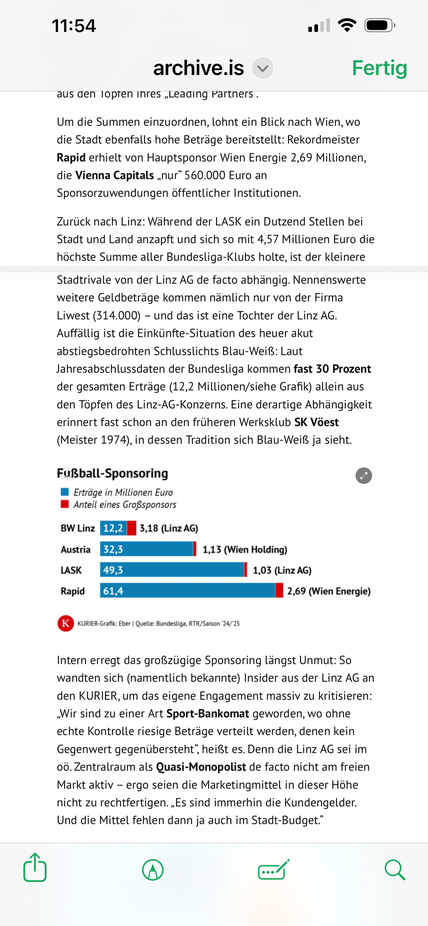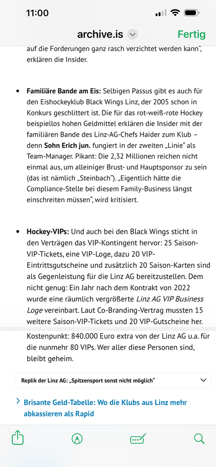 Linz AG macht über 1 Milliarde Umsatz und lt. heutigem Statement von Bgm. Prammer will man die Sponsorsummen für den Sport in Linz nicht reduzieren.