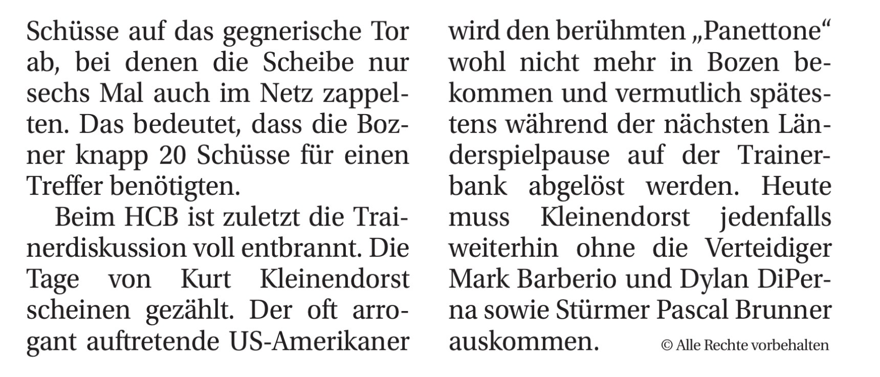 Laut Artikel heute in den „Dolomiten“ Trainerwechsel in der Dezemberpause.