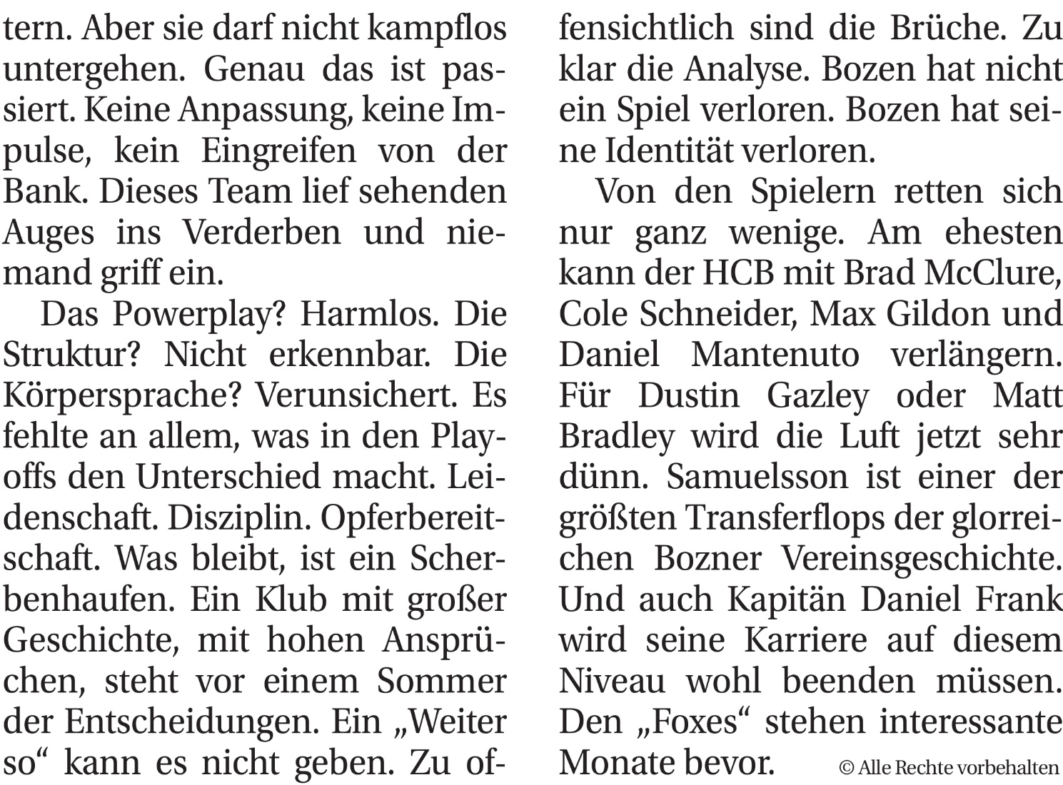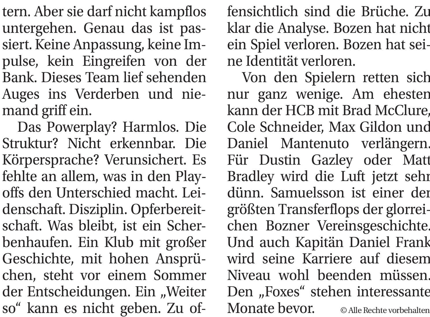 Bei Bozen gab es vielleicht auch einfach zu viele Wechsel, Zu und Abgänge, die kein Mannschaftsgefüge entstehen ließen.