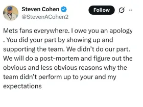 Man vergleiche einmal das ewige Selbsmitleid von Hanschitz & Co mit der öffentlichen Reaktion des Besitzers der New York Mets auf eine enttäuschende Saison und seine Kommunikation den Fans gegenüber: