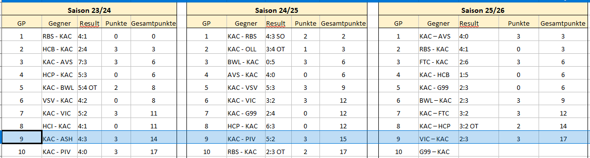 ...und so komisch das wirken mag, aber rein nach Verlustpunkten (mit 2 Spielen weniger) steht der KAC aktuell ex aequo mit Graz einen Punkt hinter den beiden Südtirolern auf Rang 4.