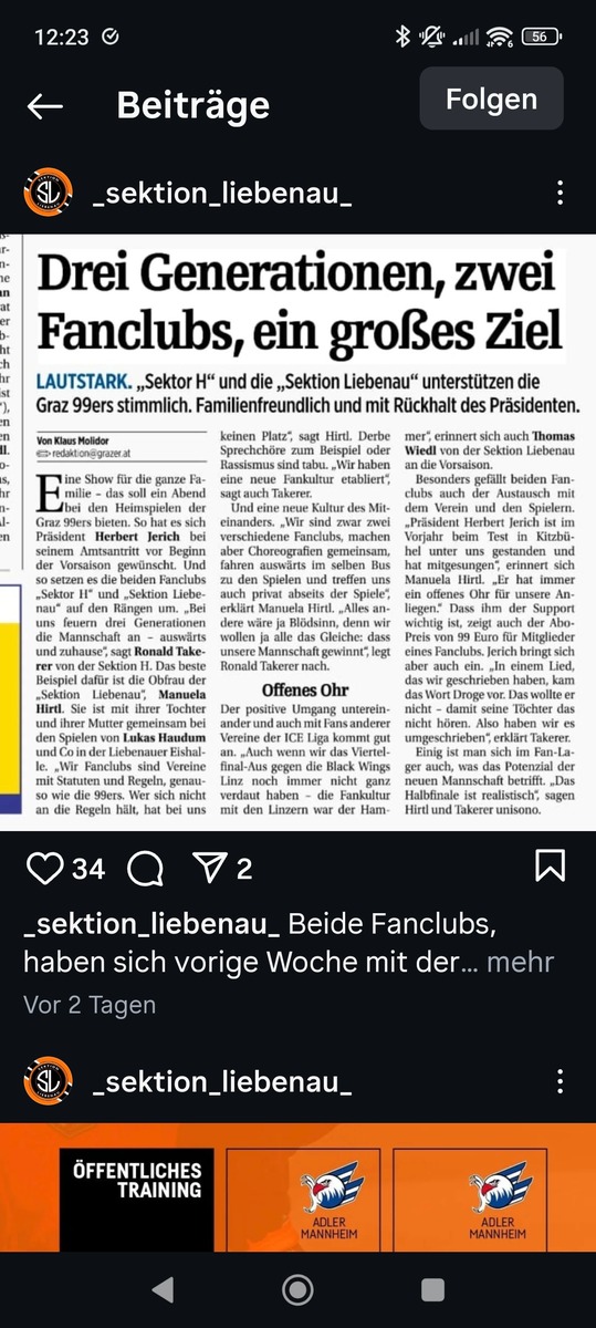 Steht zumindest so im Artikel, den die Sektion Liebenau auf Instagram gepostet hat.