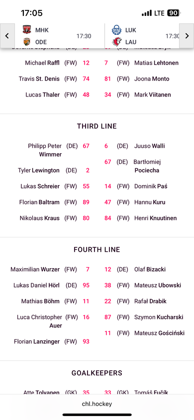 das Lineup zum heutigen Spiel! Trotz der Ausfälle von Hochkofler, Huber, Ali, Bourke und Schreiner liest es sich immer noch sehr sehr stark 🤩