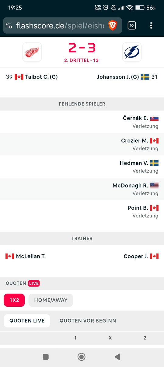 Staubtrockene Partie von Tampa auswärts gegen Detroit. Sechsters Sieg in Folge und das 18 PK ohne Gegentor. Das Tampawerkl läuft und dies trotz massiven verletzungsbedingten Ausfällen, Hut ab.