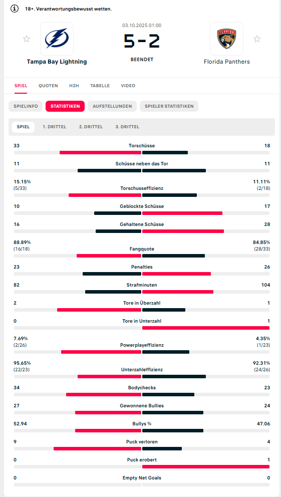 Tampa (ohne Hedman,Nick Paul) vs. Florida (ohne Barkov, Tkachuk, ) geben es sich bereits in einem Vorbereitungsspiel wieder volle Kanne, was für eine Strafenorgie.