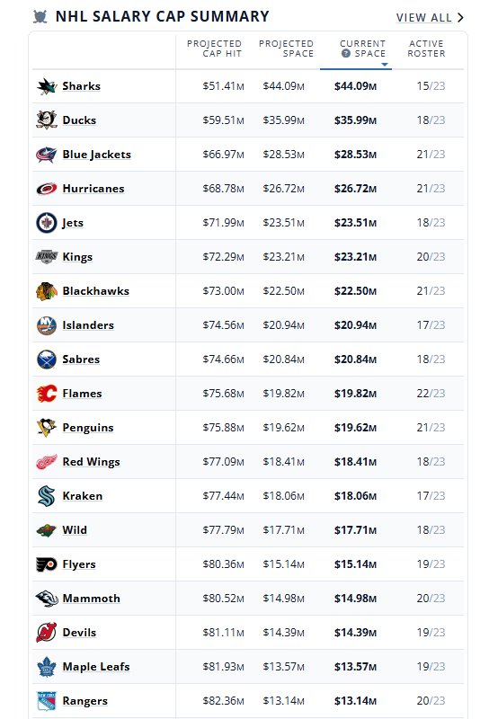 Von den Topteams haben derzeit die Canes, die Jets und die Kings noch massig Capspace zur Verfügung.