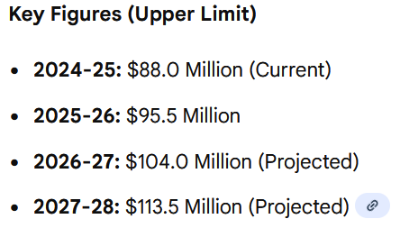 Wenn der Cap bis 27/28 um den Faktor 1.29 steigt, entsprechen den "jetzigen 7 Millionen" dann rund 9 Millionen.