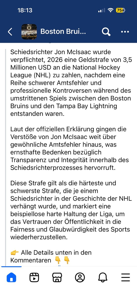 Auf der NHL Homepage findet sich nichts dazu, finde auch sonst nirgends einen Artikel. 3,5 Mio Strafe? Klingt für mich nicht glaubwürdig.