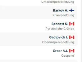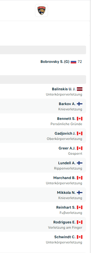 Was für eine Verletztenliste aktuell bei den Panthers ![]()