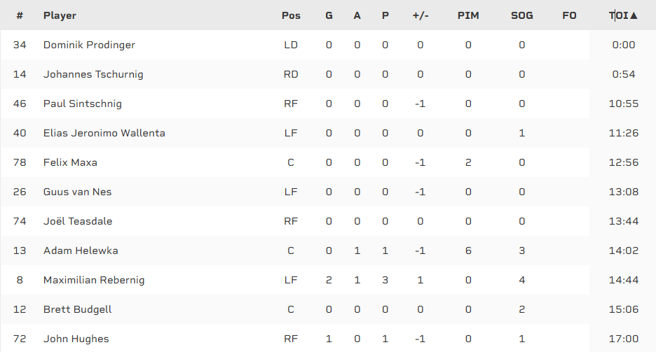 Das stimmt aber so nicht. Sintschnig wurde immer wieder mal nach vorne gezogen. Bspw. gegen Salzburg zuhause, gegen die Pioneers auswärts, gegen Pustertal Auswärts... (Wo Rebernig immer gesetzt war ist das PP, aber er hat da teilweise auch in Linie 4 gespielt)