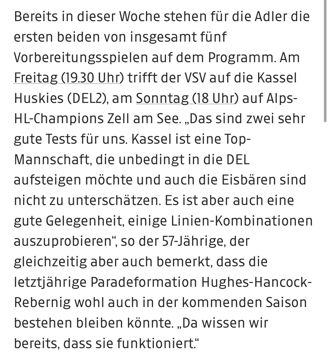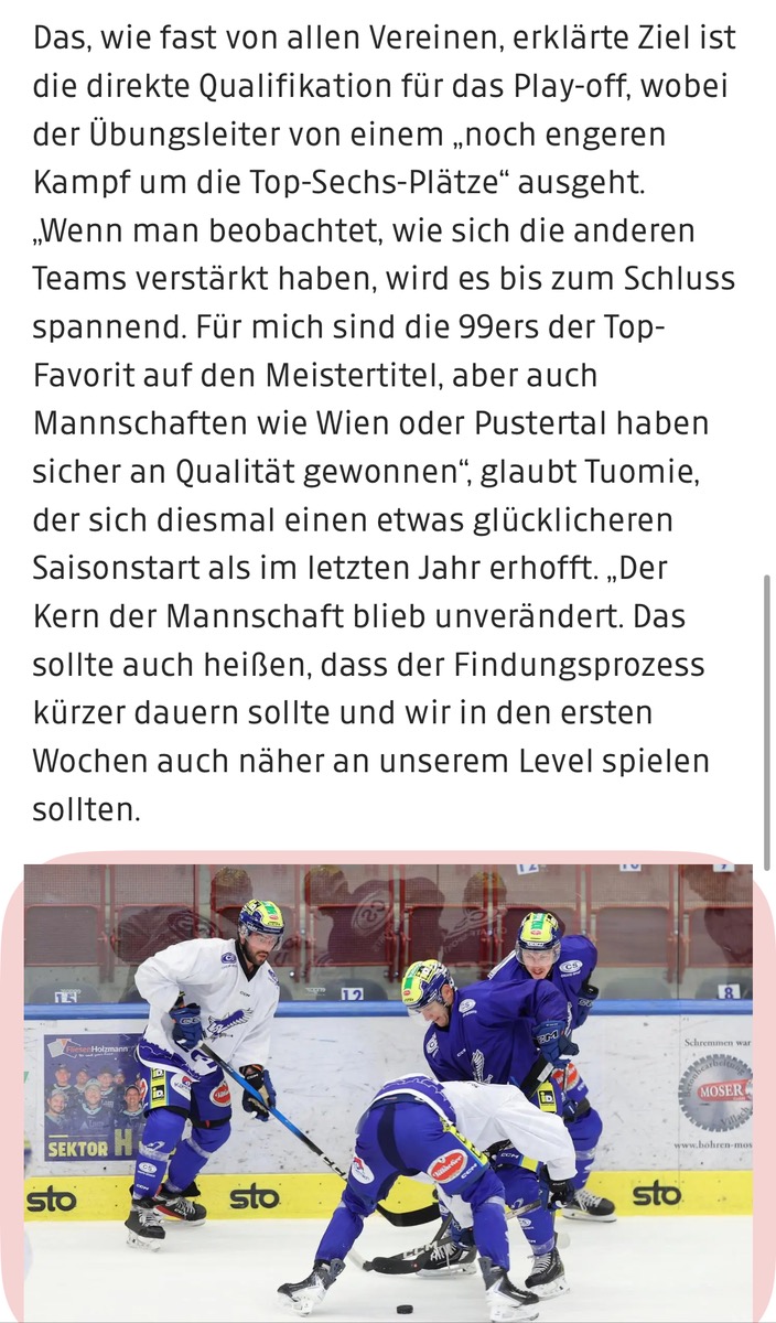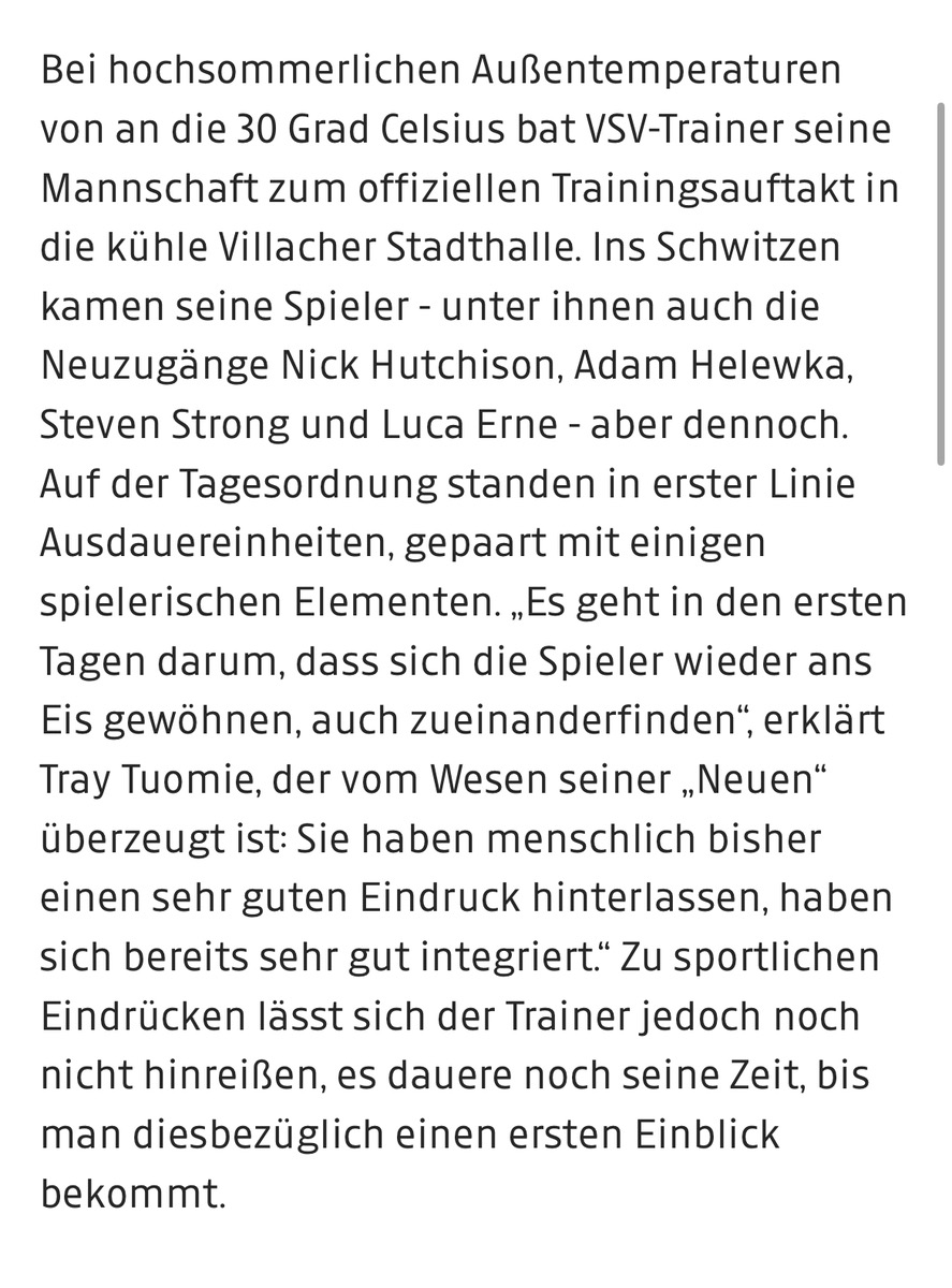 Ich muss sagen, ich erwarte mir gerade von Helewka schon einiges, der hat in den PO für Bozen sehr gut gespielt, genau so einen haben wir gebraucht für die Tiefe. Normal sollte man mit Hutchison, Helewka, van Nes und Scherbak eine Kombination finden, die eine gute 2. Linie bildet.