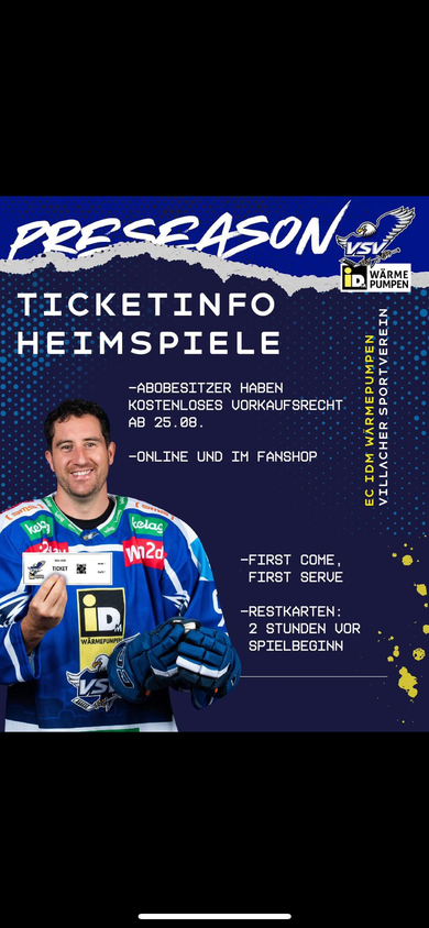Da die Stadthalle Villach aufgrund der laufenden Bauarbeiten nur eingeschränkt nutzbar ist, stehen uns leider in der Preseason nicht alle Plätze zur Verfügung. Damit trotzdem jeder Abo-Besitzer die Chance hat, die Spiele live zu verfolgen, gilt folgendes Prozedere: