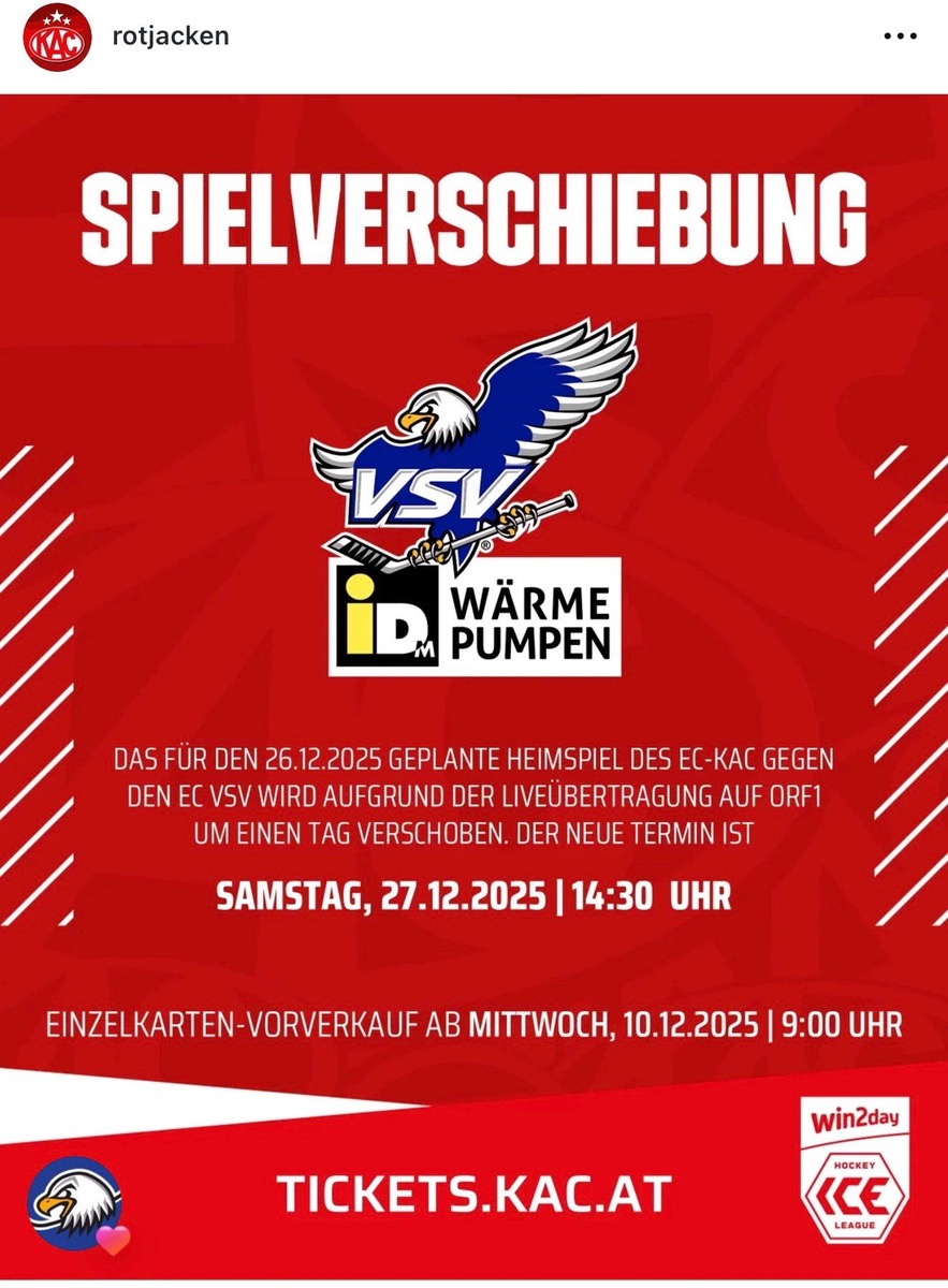 komische Uhrzeit, nachdem die Liga aber kurz darauf verkündet hat, dass es ein ORF Live Spiel sein wird, gehe ich mal stark davon aus, dass es damit zusammenhängt. Normalerweise find ich die Termine um die Uhrzeit eher Bescheiden, nachdem in den Ferien ist passts mir pers. zumindest schon halbwegs rein...