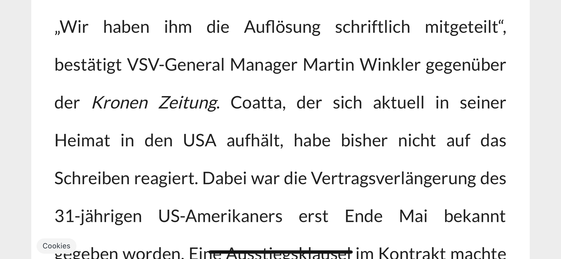 Was soll das für eine Ausstiegsklausel sein, die zwischen der Vertragsverlängerung Ende Mai und heute schlagend wird? "Wenn es am 25. Juli in Villach regnet, hat der Verein das Recht, den Vertrag einseitig aufzulösen"?