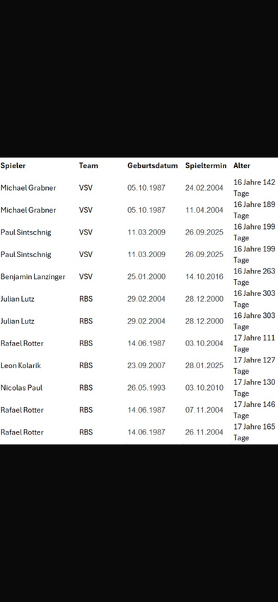 Danke! Interessant, dass sich unter den jüngsten Torschützen ausnahmslos Spieler von Villach und Salzburg finden.