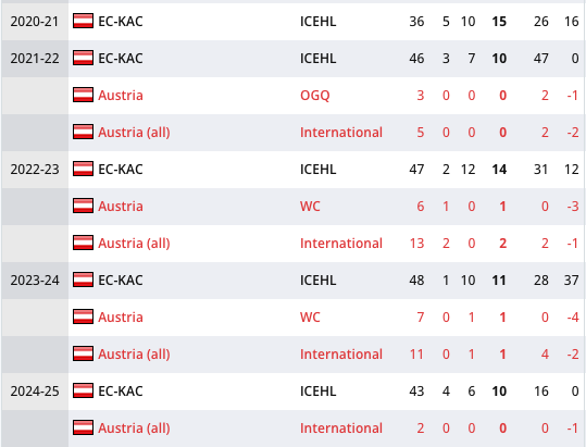 Kommende Saison hat er eh noch Vertrag, wenn man den Kader so baut, dass er zB. eine 3. Linie mit Sintschnig und Rauchenwald bildet und im PP2 eingesetzt wird, kann ich damit noch gut leben.