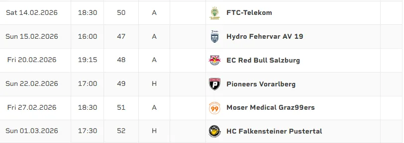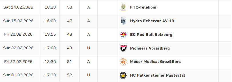 Salzburg/Graz/Pustertal rechne ich mir mal nichts aus, Vorarlberg bitte dann noch schlagen, dann holst 9/18 möglichen Punkten, gewinnst 3, verlierst 3 aber hälst die direkte Konkurrenz auf Abstand, das sollte möglich sein mMn.
