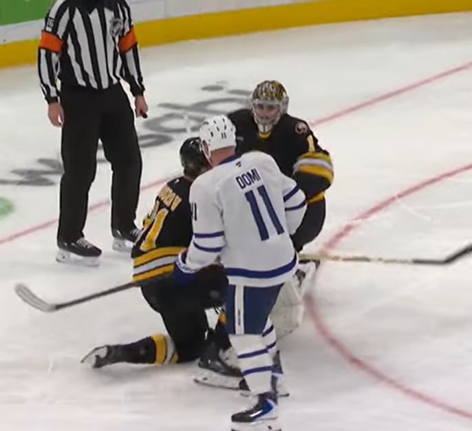 Eigentlich haben beide ihre Jobs richtig gemacht, nur mit den besseren Ende für Boston. Bei der Aktion stand es ja noch 4:3 für Boston und Domi wollte halt Zadorov zum Tanz bitten und hätte im Idealfall einen defensiv starken D für 5 Minuten auf die Strafbank mitgenommen und noch mehr Emotionen für Toronto geweckt. Zadorov war aber gescheit genug nicht auf sein Ego zu schauen ("schauts wie stark ich bin, ich kämpfe gegen jeden"), sondern hat ihn einfach umarmt und auf sich draufgelegt. Somit Stärke und Kopf bewiesen.