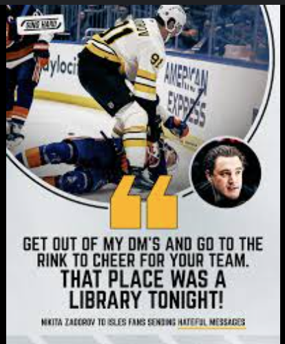Zadorov allgemein in guter Laune die letzten Spiele. Schaefer hat er auch durch die Mangel gedreht, wurde dafür in seinen DMs von Islanders Fans attackiert. Seine Reaktion?