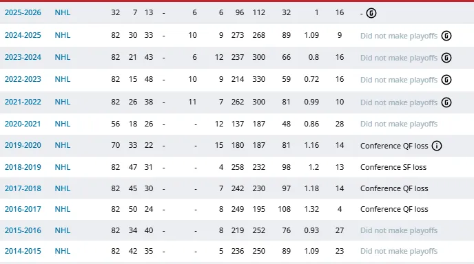 Berauschend ist das nicht, vorallem als GM verändert man nur langsam ein Team, die letzten 5 Jahre gehen damit voll auf seine Kappe. mMn. die worse case Verpflichtung für Buffalo.