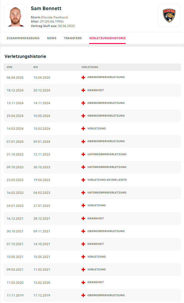 Bei dem Salär aber nicht verwunderlich. Bezüglich Verletzungen fällt auch er öfter mal aus aber meist nicht so lange wie Ekblad.