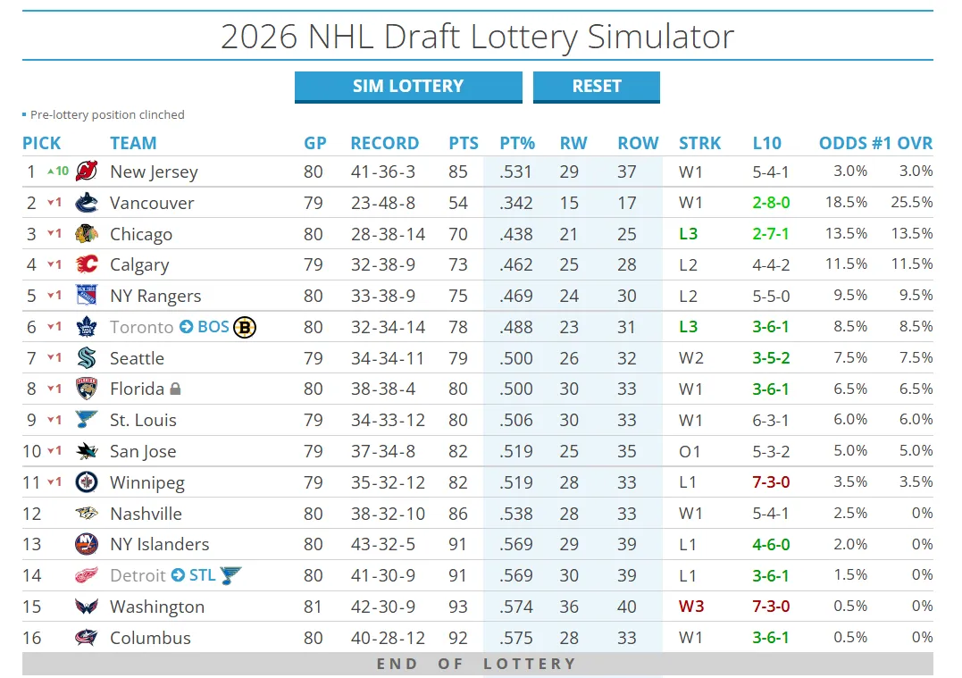 Naja, die Canes sind schon eine starke Truppe mit drei sehr starken Linien. Ihnen fehlt aus meiner Sicht ein Topgoalie und am Center auch noch ein Eizerl für einen Cuprun.