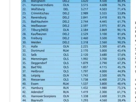 Der Zuschauerschnitt/-auslastung in deutschen Stadien sieht Mitte der Saison schon sehr gut aus. Zwei DEL2 Teams sogar in den Top 10 mit ihren großen Hallen.