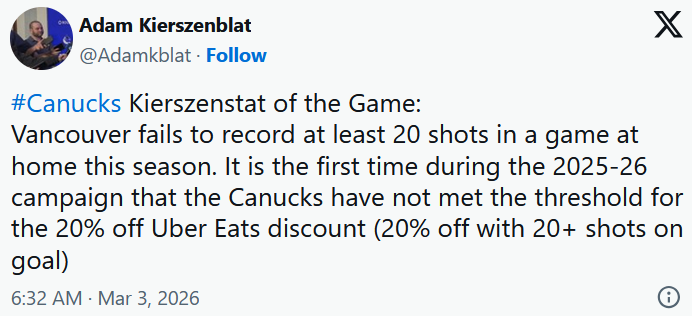 6P die letzten 5 Spiele. FOW% in Vancouver über 50%.