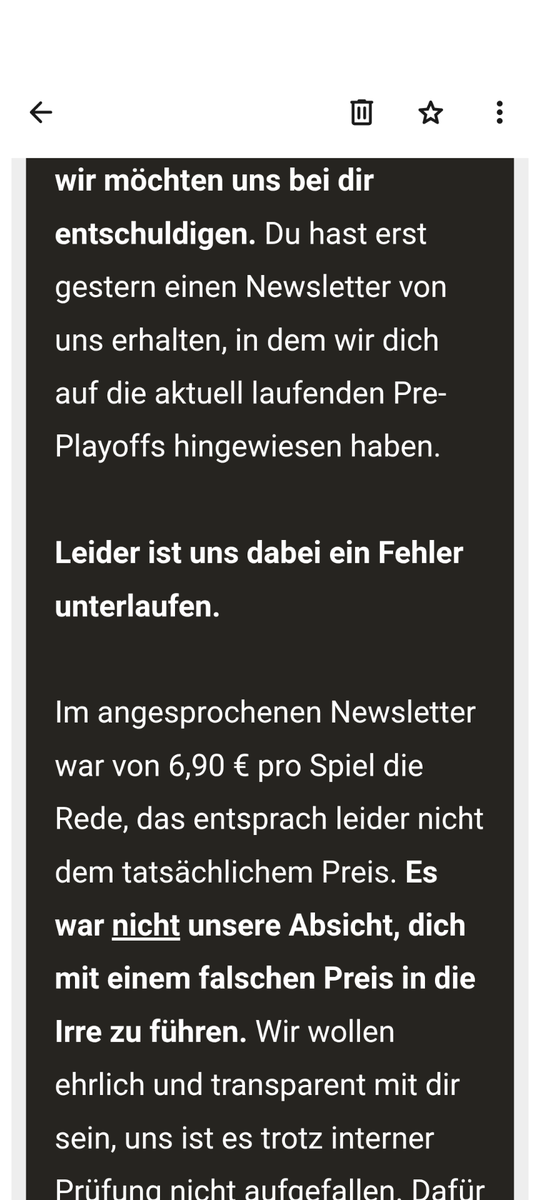 Ja ich meinte ein eigenes Angebot, nur für die Play-Offs!