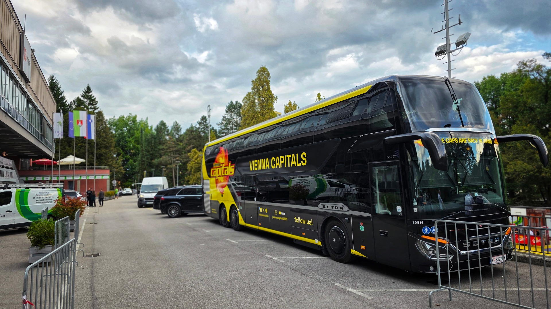 Haha, die beste Aussicht gibt’s eh nur live in der Halle Tivoli! Von Wien nach Ljubljana sind’s bloß 3 Stunden, immer schön geradeaus. Und das Bier dort kostet lässige 3 €. I wohn zwar in Wien, bin aber morgen live dabei – Freibier für alle Caps-Fans geht auf mi! :prost: