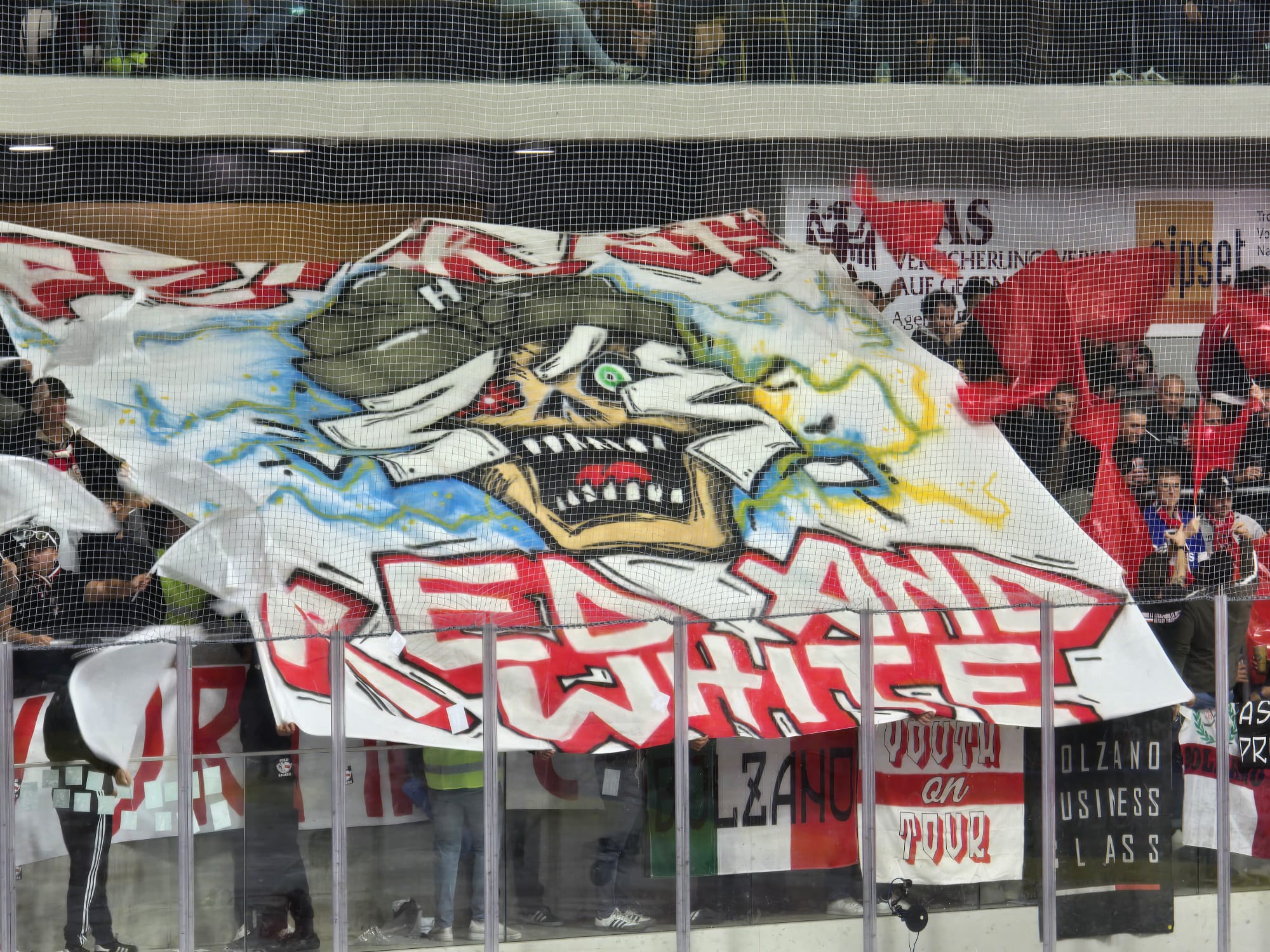 Jedenfalls, unabhängig vom Banner und dem Derby: fünf Bozner Fans, die letzte Saison nach einem Raststätten-Überfall nach einem Auswärtsspiel mit Stadionsperren belegt wurden, dürfen künftig wieder unbehelligt in die ICE-Stadien pilgern. Klar, das Gerichtsurteil ist zu akzeptieren, die Begründung zum Teil, naja, fragwürdig. Die besagten Personen waren freilich nicht beim Auswärtsspiel in Villach sondern haben im Pustertal beim Erdäpfelklauben geholfen. Ironie beseite, aber in Villach selbst gab es mit den Fans Probleme, in Innsbruck ebenso, wo man sich mit den gleichermaßen gewaltbereiten amici aus Garmisch traf. Nicht zum reinen Hockeyschauen versteht sich. Auch in Salzburg trifft man sich gern und präsentiert zumindest fragwürdige Fahnen und Insignen.